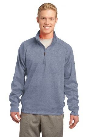 Cool, dry and colorfast, this quarter-zip pullover has a pill-resistant, snag-resistant face with a matte finish and brushed backing for comfort. It features double-knit construction, as well as a zippered pocket on the left sleeve and a chin guard.